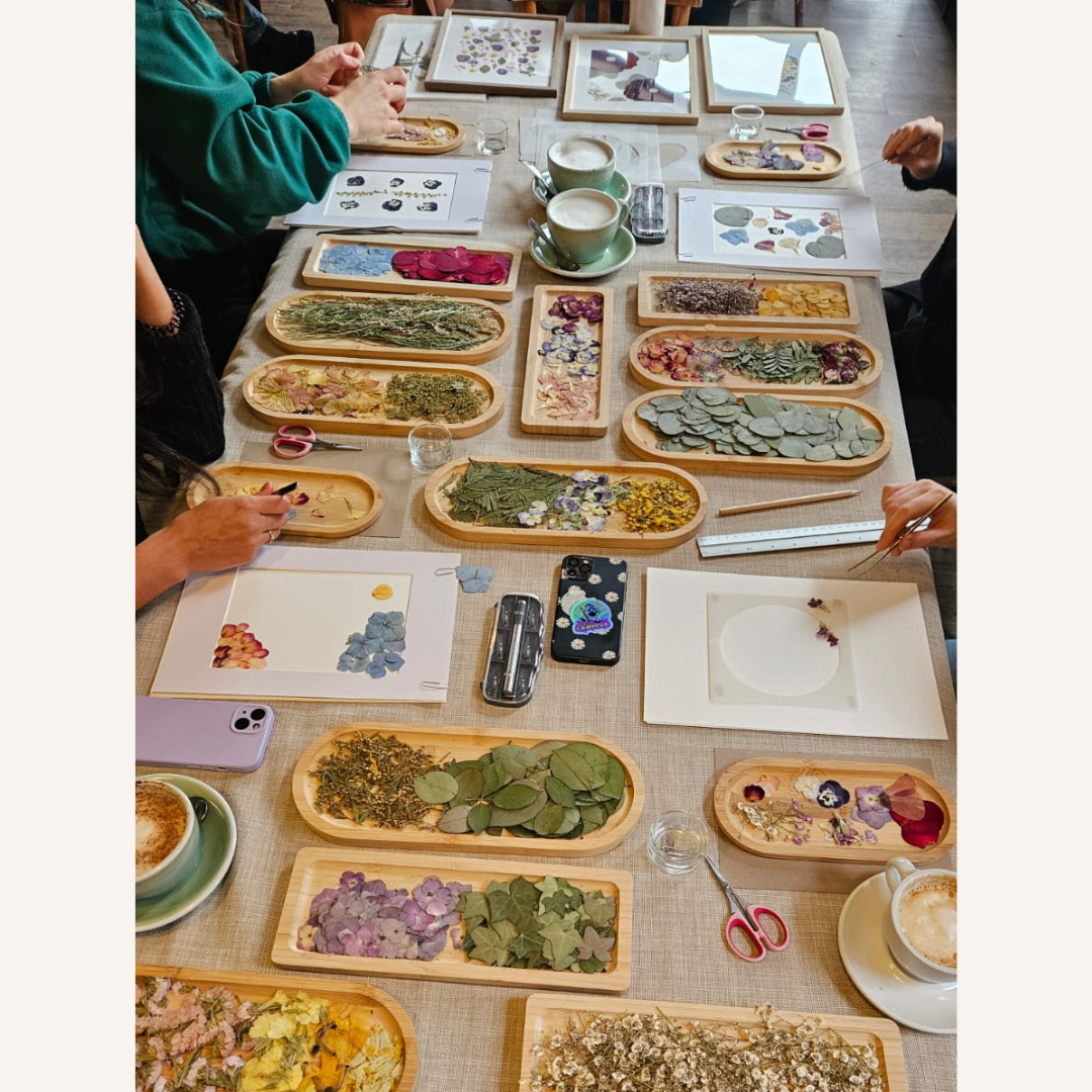 Pour un anniversaire, un EVJF, une baby shower ou un team building, l’atelier herbier s’adapte à vos envies et à la taille de votre groupe.